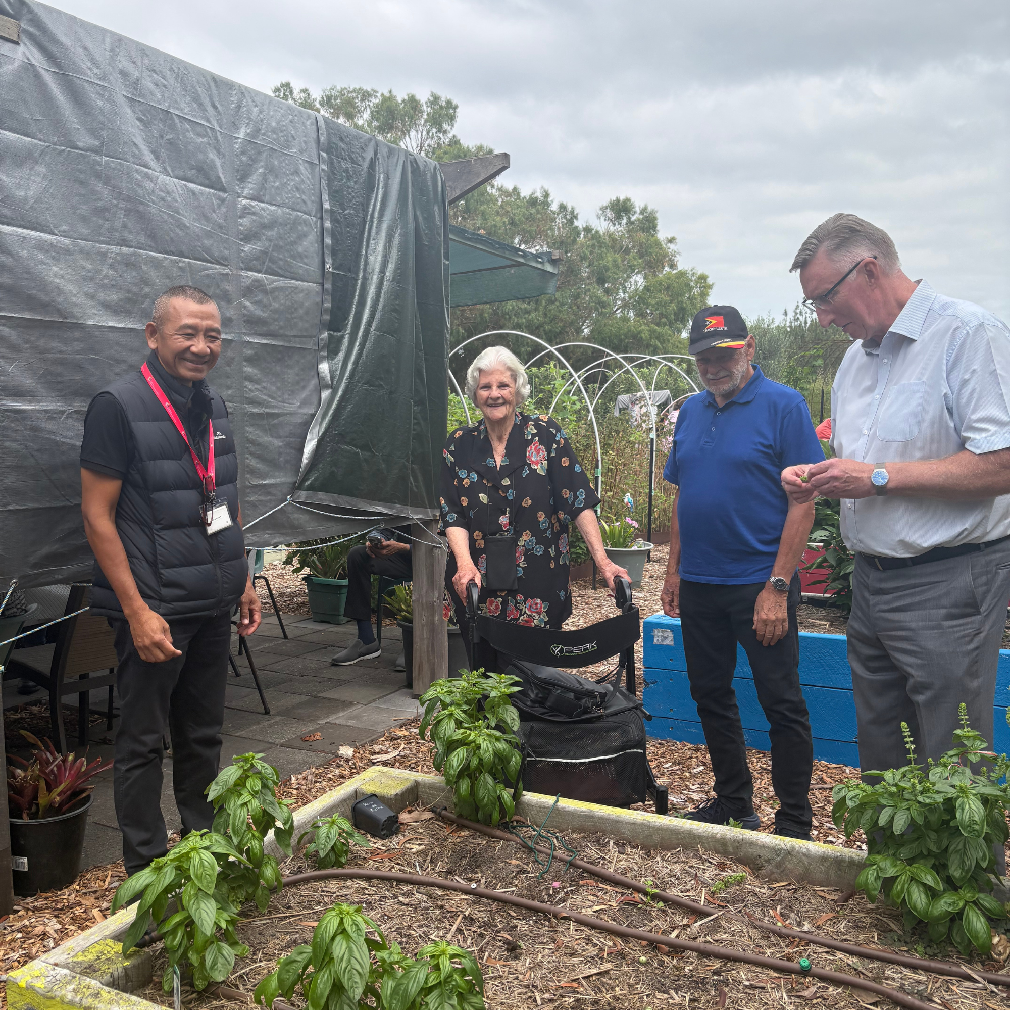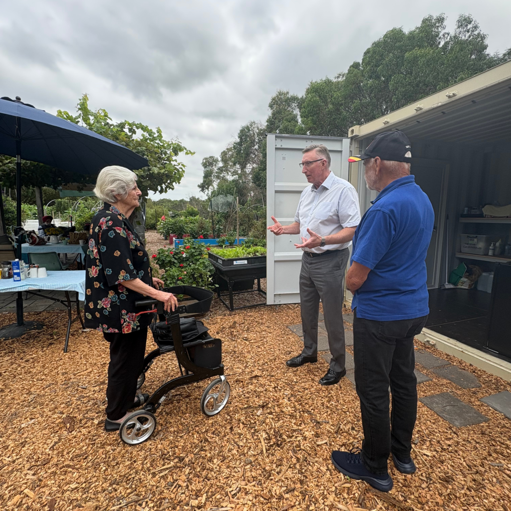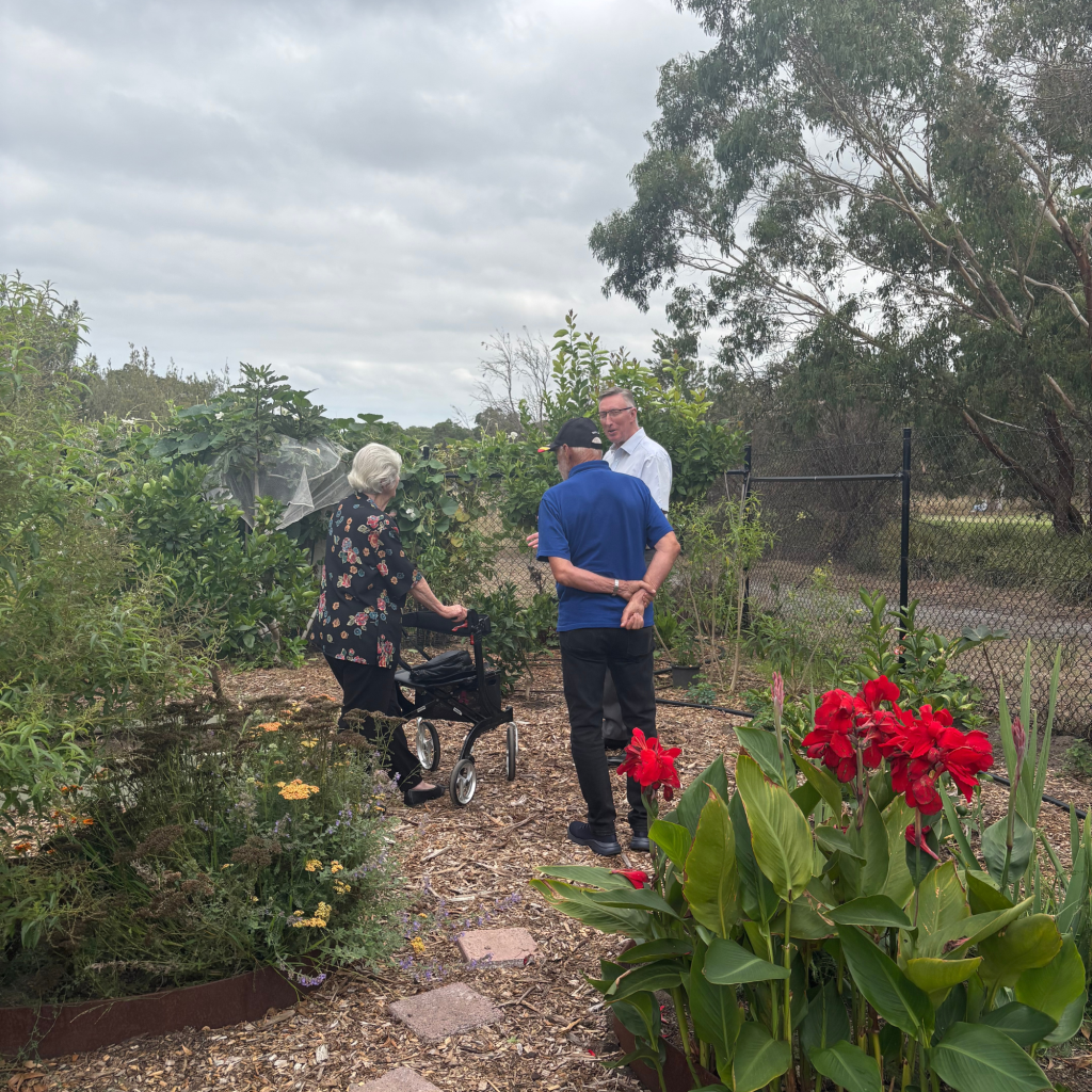 During the visit, Arnis and Robin spent time speaking with support workers Aroon and Emma, whose passion for the program was clear, as they spoke enthusiastically about the additional shed and how the new space has allowed them to better organise their work and spend more time in the garden.