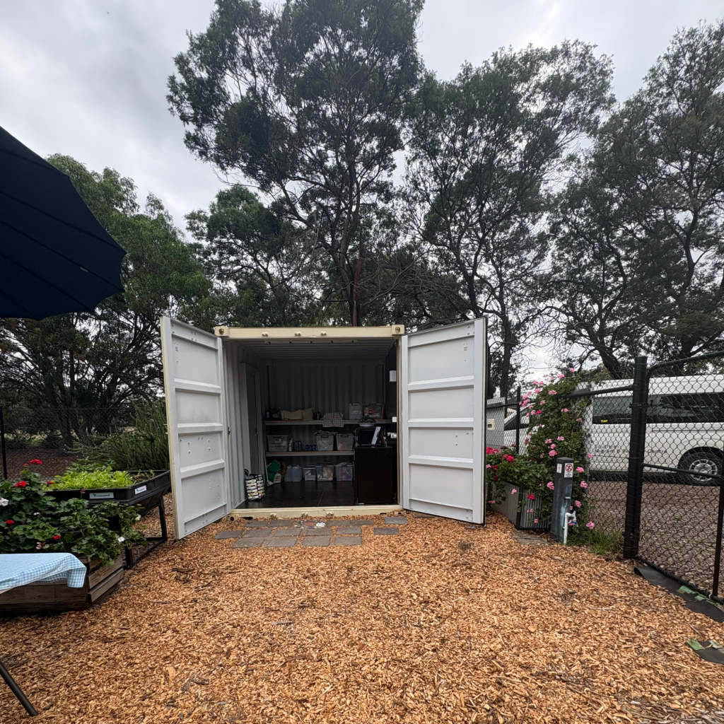 From the moment they arrived, the atmosphere stood out. There was a warmth in the way participants and staff welcomed Arnis and Robin. As they were shown around by SMRC’s CEO Jim Mullan, the difference made by the new storage container quickly became clear. The site felt more open, organised, and safer. Gardening tools were stored properly, refreshments had their own space, and the greenhouse had been reclaimed for its true purpose, growing and housing plants. These changes didn’t just improve functionality they made the environment more inviting for everyone who spends time there.